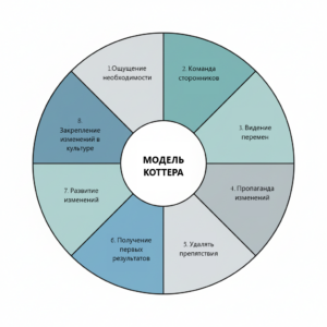 Подход Джона Коттера предлагает восемь шагов: создать чувство срочности и необходимости изменений, собрать коалицию сторонников, сформулировать понятную картину будущего, доносить её до людей, убирать барьеры, добиваться ранних побед, расширять успех и закреплять изменения в повседневной работе.