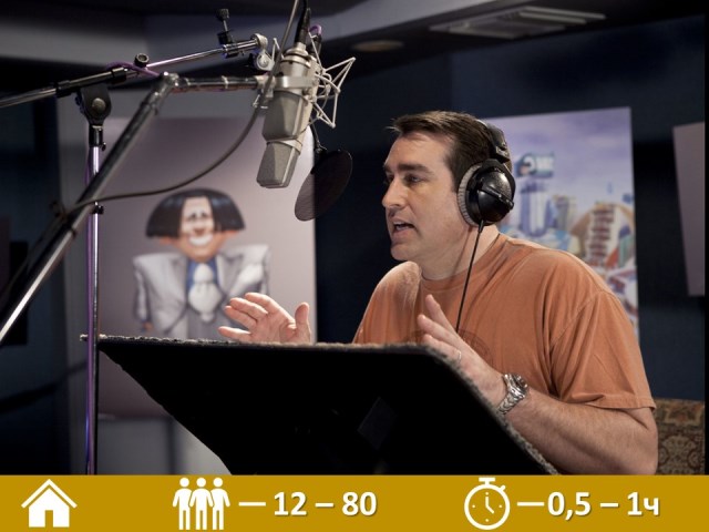 В этом интерактиве командам предстоит озвучить фрагменты знаменитых мультфильмов, фильмов, рекламы, интервью и т.д. Они могут рекламировать ваш бренд/продукцию/услуги. Или придумывать отвлеченный смешной текст.